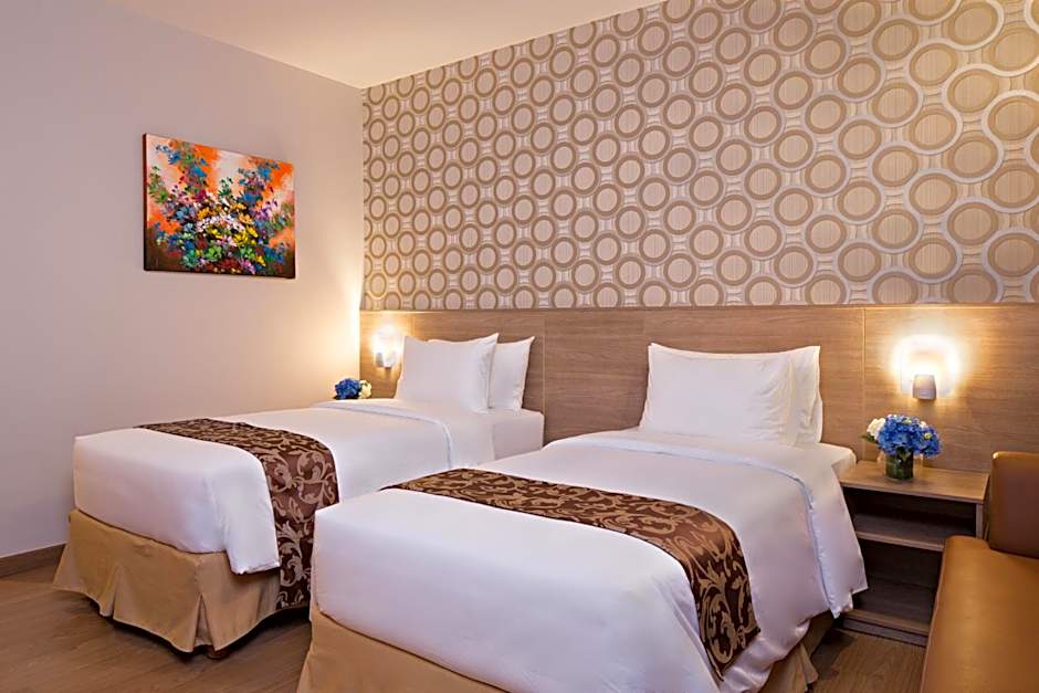 This air-conditioned twin room is consisted of of a flat-screen TV with cable channels, a private bathroom as well as a balcony with city views. The unit has 2 beds.